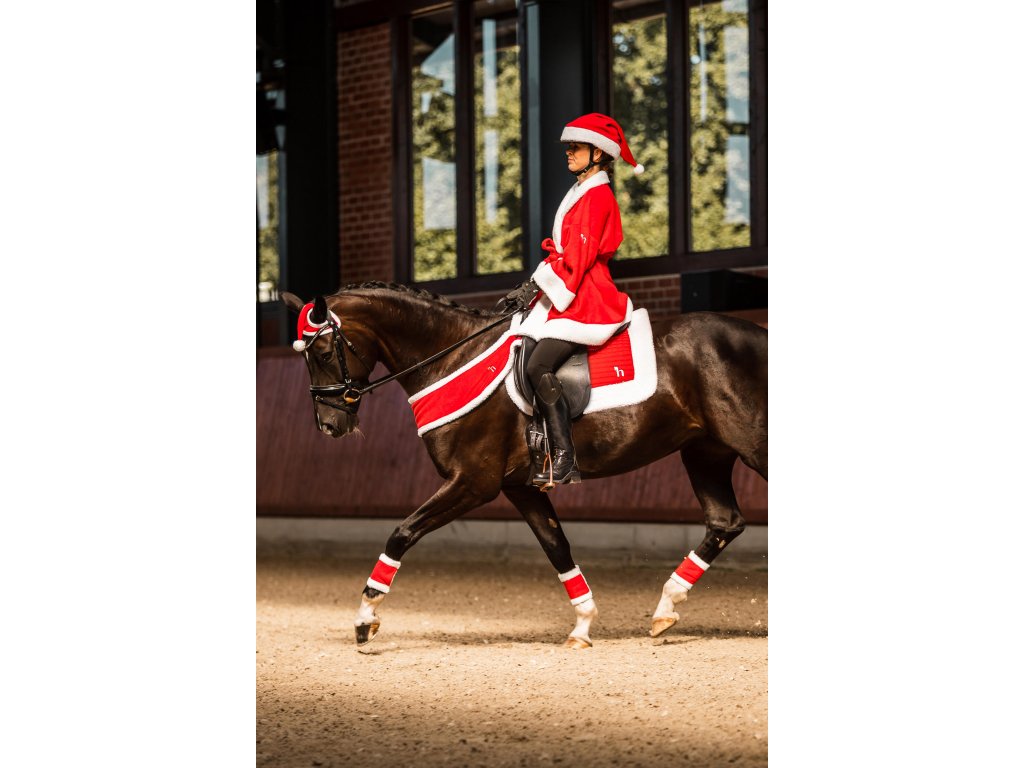 Horze Vánoční nákrčník je perfektním doplňkem zimního outfitu vašeho koně! Je vyroben z měkké umělé kožešiny, která je příjemná na dotek a komfortní pro koňskou kůži. Snadno se upevňuje pomocí suchého zipu a sváteční barvy společně s decentní výšivkou Horze dodají vašemu koni veselý vánoční vzhled. Veselé Vánoce!