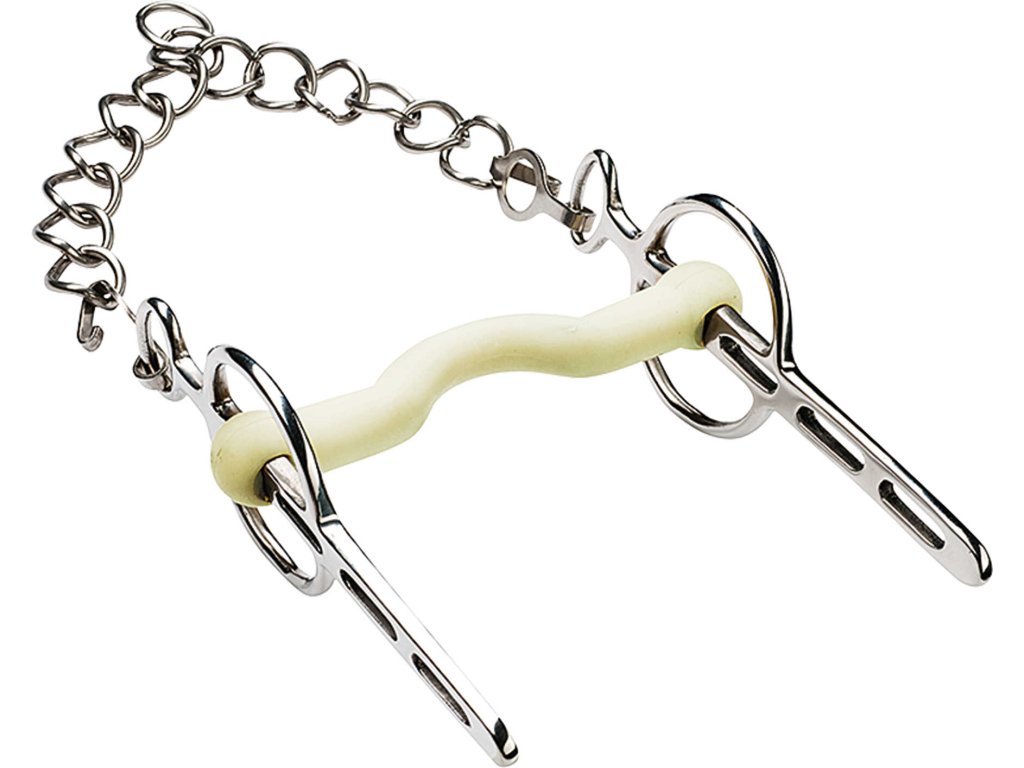 Flexi barrel udidlo s jemnou a uklidňující jablečnou vůní, vybavené jazykovým průchodem pro větší komfort koně. Pružný materiál podporuje příjemný kontakt a uvolnění v hubě, což napomáhá lepší spolupráci při ježdění. Udidlo je osazeno třemi kroužky pro otěže, které umožňují variabilní nastavení působení.