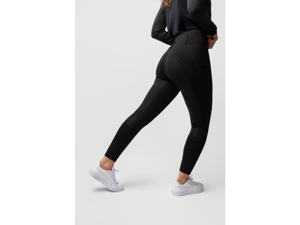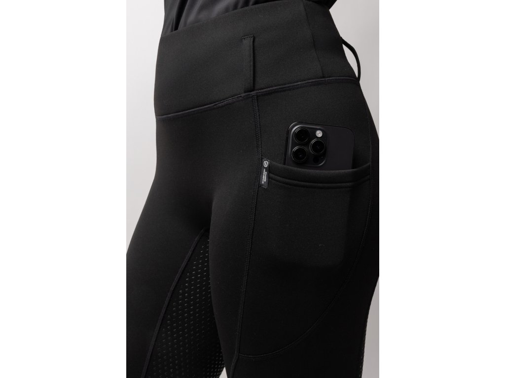 Dámské zimní jezdecké legíny Horze Greta s fleecem a celogripem. Hřejivé, pružné a pohodlné s nastavitelným pasem a kapsami na stehnech pro každodenní ježdění.